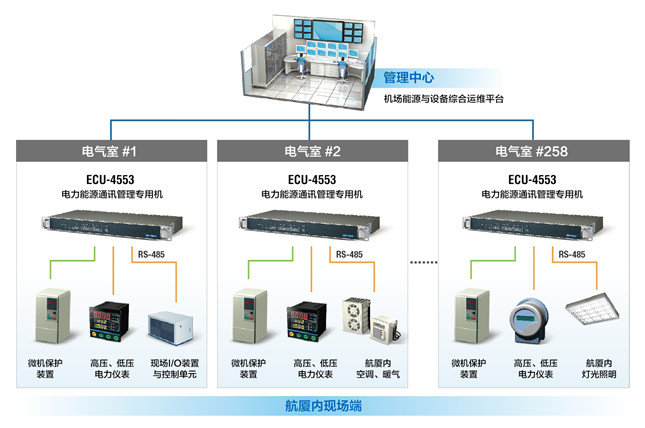 系統(tǒng)需求以滿(mǎn)足一億人次年旅客吞吐量為目標(biāo)的北京新機(jī)場(chǎng)即將于2019年下半年竣工營(yíng)運(yùn)。該機(jī)場(chǎng)既被定位為大型國(guó)際航空樞紐,更致力于成為中國(guó)綠色機(jī)場(chǎng)的典范。因此設(shè)計(jì)之初就把節(jié)能環(huán)保理念納入規(guī)劃,并已委由系統(tǒng)整合商為整個(gè)機(jī)場(chǎng)的26個(gè)變電室、60臺(tái)變壓器、9個(gè)備用電源發(fā)電機(jī)房及258個(gè)配電室建置一套無(wú)人值守、集中管理的能源與設(shè)備綜合運(yùn)維平臺(tái),藉此全面監(jiān)控航廈內(nèi)的空調(diào)、照明、供水、供暖、電梯等能耗設(shè)施及相關(guān)儀表。而為了能將機(jī)場(chǎng)內(nèi)的能耗做通盤(pán)審計(jì)以分析出可節(jié)省能源的潛在環(huán)節(jié),再通過(guò)聯(lián)動(dòng)機(jī)制降低能耗,系統(tǒng)整合廠商需要在每間電氣室內(nèi)配置計(jì)算機(jī)作為數(shù)據(jù)網(wǎng)關(guān)收集大量數(shù)據(jù),并且將不同通訊協(xié)議數(shù)據(jù)轉(zhuǎn)換為符合IEC 61850-9的格式后,才可上傳至能源與設(shè)備綜合運(yùn)維平臺(tái)。而該系統(tǒng)整合廠商想要采購(gòu)的計(jì)算機(jī)必須滿(mǎn)足以下條件: ·高性能、高穩(wěn)定性的工業(yè)級(jí)計(jì)算機(jī)以提供足夠的運(yùn)算能力處理大量資料; ·符合IEC 61850-3標(biāo)準(zhǔn)的訊號(hào)隔離與抗干擾硬件設(shè)計(jì); ·采用RT-Linux實(shí)時(shí)操作系統(tǒng)以達(dá)到實(shí)時(shí)控制; ·較寬的工作溫度范圍與較佳的抗干擾能力以便在嚴(yán)苛環(huán)境中穩(wěn)定運(yùn)作; ·具備多個(gè)RS-485/232串行端口與網(wǎng)絡(luò)端口以連接眾多底層設(shè)備與傳送數(shù)據(jù)。 北京新機(jī)場(chǎng)能耗(圖片源自網(wǎng)絡(luò)) 系統(tǒng)概述同時(shí),系統(tǒng)也可經(jīng)由ECU-4553對(duì)底層設(shè)備下達(dá)控制指令,譬如根據(jù)航班信息來(lái)事前了解某些區(qū)域旅客流量的多寡,于人流較少時(shí)關(guān)閉該區(qū)的空調(diào);又或者是當(dāng)接收到變壓器的異常訊號(hào)而出現(xiàn)臨時(shí)停電狀況時(shí),亦能由監(jiān)控中心遠(yuǎn)程啟動(dòng)備用電源發(fā)電機(jī)。 內(nèi)建TI Cortex A8處理器的ECU-4553是一款符合IEC 61850電力規(guī)范的高性能工業(yè)等級(jí)通訊管理專(zhuān)用機(jī),搭配具有實(shí)時(shí)特色的RT-Linux操作系統(tǒng),可讓智能化能耗監(jiān)控系統(tǒng)的整體執(zhí)行效率更精準(zhǔn)。支持寬溫(-40~70°C)則可排除因極度低溫或高溫導(dǎo)致計(jì)算機(jī)無(wú)法啟動(dòng)或死機(jī)的問(wèn)題。而在電磁兼容性(EMC)方面,ECU-4553符合IEC 61850-3硬件標(biāo)準(zhǔn)規(guī)范,既具備足夠抵抗外界電磁干擾的能力,同時(shí)也不會(huì)對(duì)其它設(shè)備或裝置的運(yùn)作造成影響,因此就算被安裝在有眾多電氣與電子設(shè)備的環(huán)境內(nèi),它依然能夠穩(wěn)定運(yùn)行。 至于承上啟下的部分,ECU-4553提供4個(gè)網(wǎng)口、16個(gè)RS-232/485串口,可輕松連接使用不同協(xié)議(例如IEC-60870-5-104、IEC-60870-5-101、Modbus/RTU、Modbus/TCP)的各種設(shè)備,既滿(mǎn)足項(xiàng)目目前的聯(lián)網(wǎng)需求,又為系統(tǒng)預(yù)留了日后擴(kuò)充的空間。 專(zhuān)案導(dǎo)入系統(tǒng)架構(gòu)圖![]() 結(jié)論以上案例來(lái)自研華官網(wǎng) |