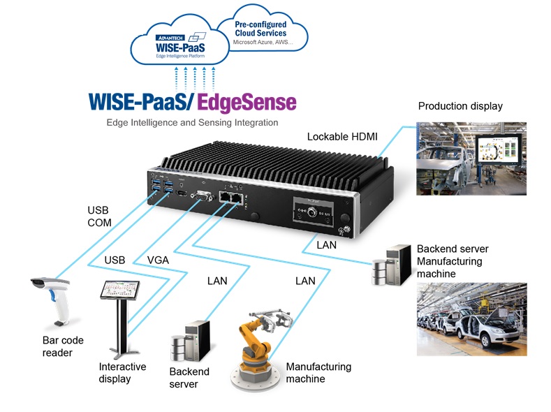 ![]() 在研華軟硬件的協(xié)助下,系統(tǒng)將在裝配過程中提供即將安裝的下一個(gè)零件的信息,并在顯示器上顯示信息供現(xiàn)場(chǎng)操作人員查看。同時(shí),系統(tǒng)還將收集數(shù)據(jù)并將數(shù)據(jù)導(dǎo)出至 SQL Server 數(shù)據(jù)庫(kù)進(jìn)行生產(chǎn)記錄歸檔和大數(shù)據(jù)聚合,以便將來進(jìn)行流程改進(jìn)和系統(tǒng)維護(hù)。 如果 ARK-2250 控制器檢測(cè)出安全傳感器傳輸?shù)臄?shù)據(jù)存在任何問題,它將自動(dòng)停止該過程以避免損壞設(shè)備并降低財(cái)務(wù)損失。 在顯示方面,ARK-2250 提供 HDMI、VGA 和可選第三方顯示接口,能夠在不同應(yīng)用場(chǎng)景下靈活使用。