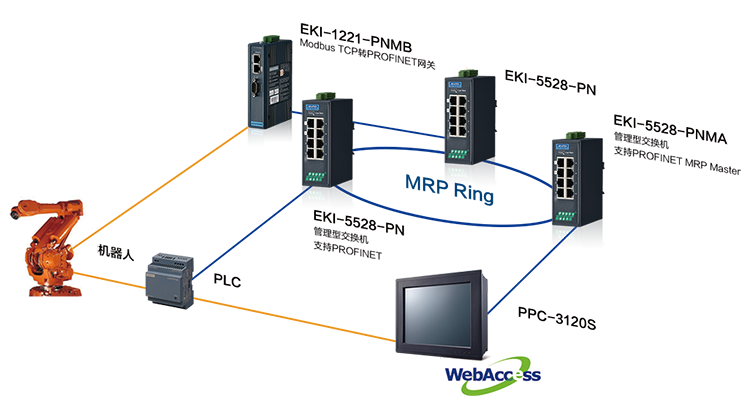 ▌▌方案設(shè)計(jì)為滿足客戶定制開發(fā)軟件的需求,研華科技推薦PPC-3120S+WebAccess/HMI,其中PPC-3120S 是基于X86架構(gòu)的硬件平臺(tái)一體機(jī),通用性強(qiáng)同時(shí)具備較好的擴(kuò)展功能(可以外接各種外設(shè),例如:條碼槍 顯示器 打印機(jī)等等),并且可市面上大部分品牌的PLC 直接連接通訊 。與PPC-3120S搭配應(yīng)用的研華Webacces/HMI人際界面軟件,不僅具備強(qiáng)大的圖形界面數(shù)據(jù)庫,可提供友好的易于整合的開發(fā)工具。最重要的是可以支持客戶需求的軟件定制,滿足客戶特殊化要求。另外PPC-3120S采用全平面觸摸屏設(shè)計(jì),機(jī)身美觀,緊湊輕薄,適用于客戶現(xiàn)場(chǎng)多種安裝方式。同時(shí)兼具獨(dú)特的智能E-eye設(shè)計(jì),可監(jiān)測(cè)一體機(jī)各個(gè)接口正常與否狀態(tài)。 為實(shí)現(xiàn)PPC-3120S與客戶現(xiàn)有PLC設(shè)備的通訊,研華科技推薦EKI-5500/5600系列協(xié)議交換機(jī)+EKI-1221IEIMB和EKI-1221PNMB協(xié)議網(wǎng)關(guān)的解決方案。在此方案中EKI-5500/5600系列協(xié)議交換機(jī),支持Profinet、EtherNet/IP和Modbus/TCP,提供跨協(xié)議通訊,實(shí)現(xiàn)設(shè)備、PLC、中控室等平臺(tái)系統(tǒng)間的有效溝通。EKI-1221IEIMB和EKI-1221PNMB協(xié)議網(wǎng)關(guān)設(shè)備,支持Modbus TCP to Profinet或EtherNet/IP, 提供協(xié)議轉(zhuǎn)換, 兼容現(xiàn)有設(shè)備,無需采購(gòu)昂貴的新設(shè)備。