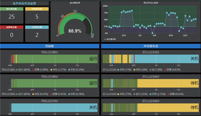 所有設(shè)備的狀態(tài)、稼動(dòng)率也以直觀的方式顯示出來;