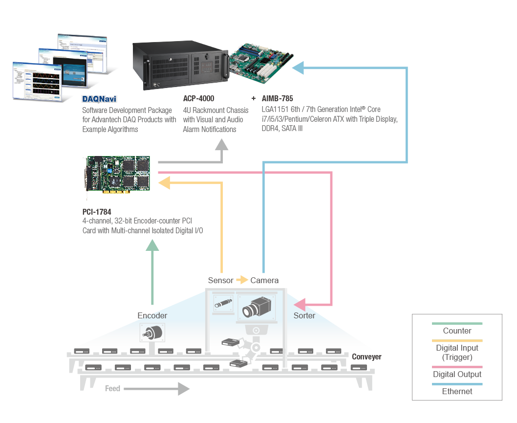 系統(tǒng)描述 IPC-7132是點膠機(jī)的計算平臺,它配備了Core-i3 CPU,可以進(jìn)行精確的多任務(wù)運動控制和精確的圖像檢查。氣動組件與PCI-1756高速IO卡結(jié)合使用,可以同時控制電磁閥和檢查信號?;赑CI-1245V 4軸DSP的電機(jī)控制卡可以通過最大5Mpps脈沖輸出設(shè)備將其關(guān)鍵路徑規(guī)劃功能輸出到所連接的服務(wù)器電機(jī)控制器?;谘腥A自行開發(fā)的通用運動API,客戶可以通過補(bǔ)償線性,電弧功能來規(guī)劃定制路線,同時用PWM波控制分配噴嘴,每個輸出量可以通過打開和關(guān)閉噴嘴的時間來確定。其中,打開和關(guān)閉噴嘴所需的時間(ON_time + Off_Time)稱為一個周期。當(dāng)涂布粘合劑時,在定下固定次數(shù)的循環(huán)后,可以通過限制速度來控制分布,從而獲得復(fù)雜的涂布圖案。涂布膠粘劑時,以100?200 Hz的噴射速度決定膠粘劑的閥和相應(yīng)的量,同時通過噴嘴的移動速度控制間距。為確保精確的多任務(wù)運動控制和精確的圖像檢查,工業(yè)計算機(jī)采用了IPC-7132機(jī)箱和AIMB-701主板(Core-i3 CPU),并安裝了PCI-1756高速I / O卡連接到氣動元件以控制電磁閥并獲取信號數(shù)據(jù)?;赑CI-1245 4軸DSP的電機(jī)控制卡被認(rèn)為是服務(wù)器電機(jī)控制器的理想選擇,因為它具有用于軌跡規(guī)劃的保留內(nèi)存,最大脈沖輸出為5 Mpps。它還支持研華的Common Motion API,該API可以通過線性和弧形功能自定義軌跡,同時通過PWM控制分配噴嘴,從而能夠根據(jù)噴嘴周期(指打開和關(guān)閉噴嘴之間的時間)設(shè)置輸出量。噴嘴)。因此,可以通過限制速度來控制分布,從而獲得復(fù)雜的涂層圖案。具體地,分配器閥和粘合劑量可以在100?200Hz的噴射速度下進(jìn)行管理,并且可以通過調(diào)節(jié)噴嘴的移動速度來控制間隔。 項目實施 ACP-4000:具有可視和音頻警報通知的4U機(jī)架式機(jī)箱